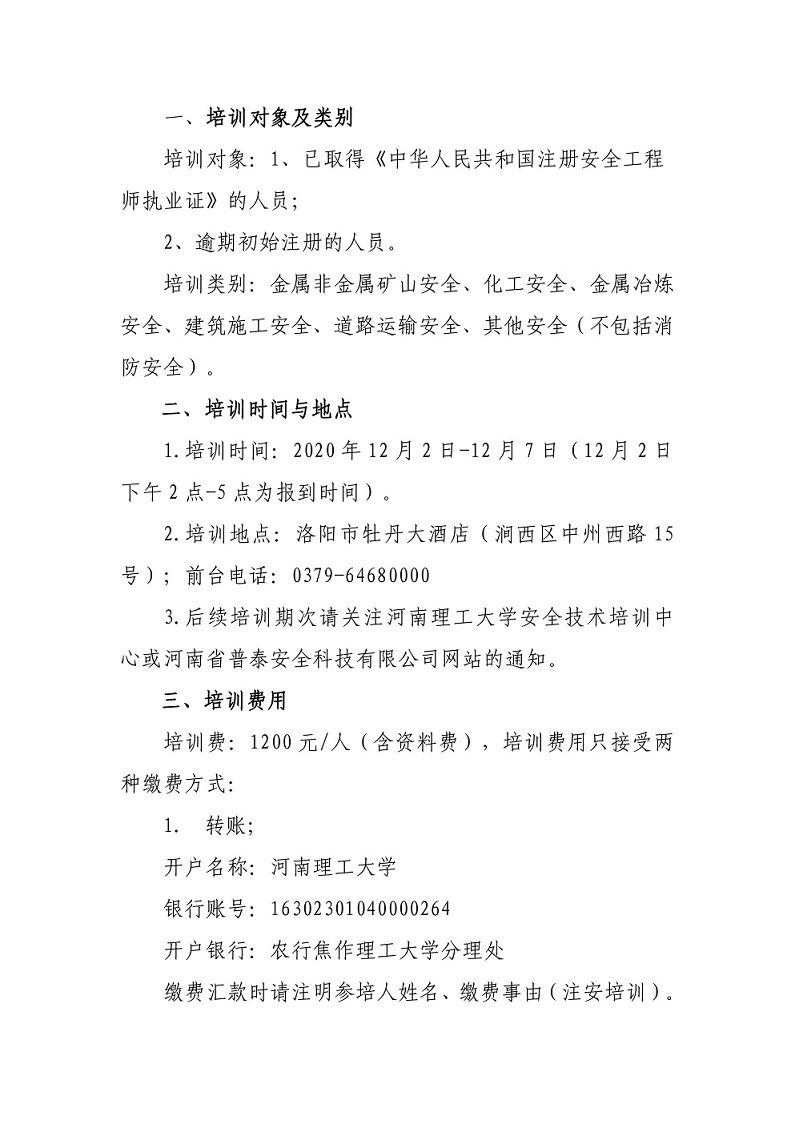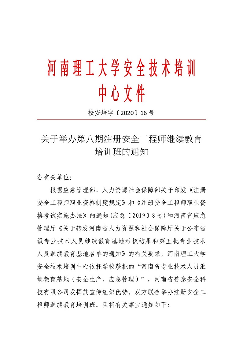 关于举办第八期注册安全工程师继续教育培训班的通知