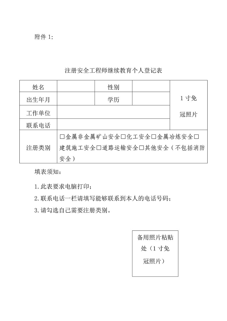 附件1:注册安全工程师继续教育个人登记表