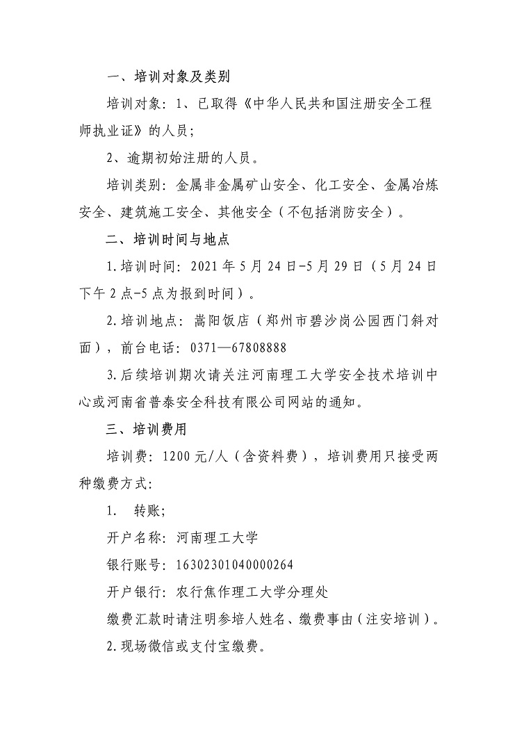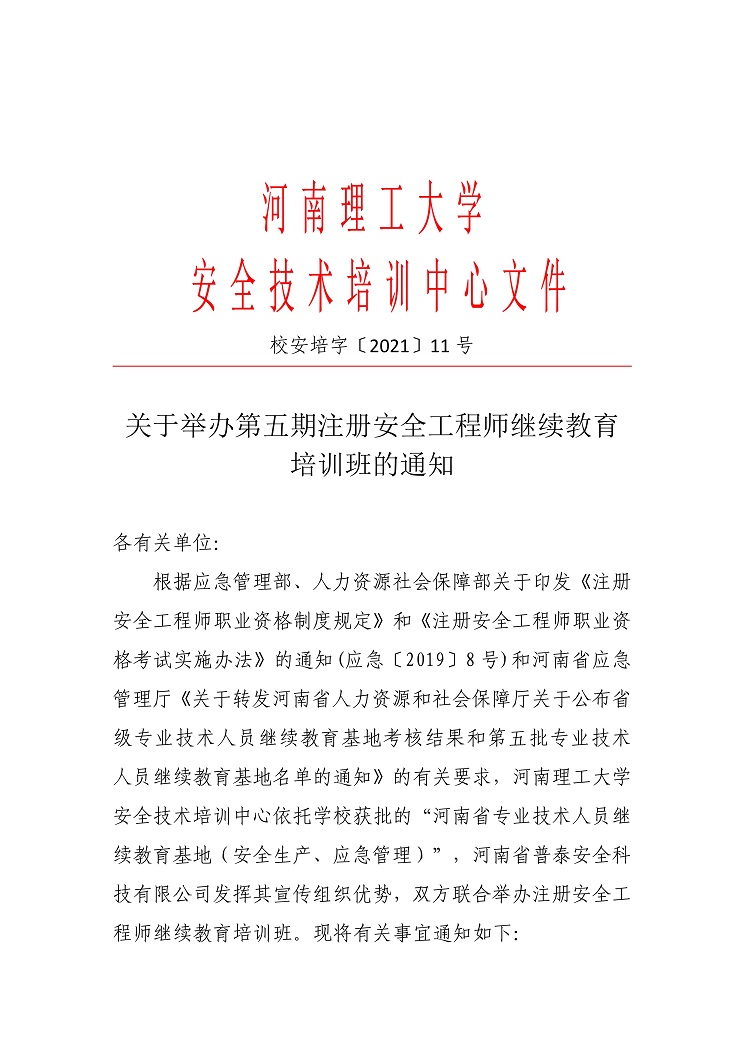 关于举办第五期注册安全工程师继续教育培训班的通知