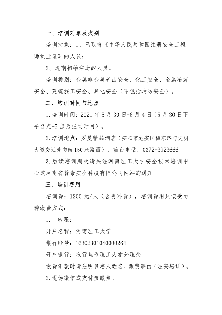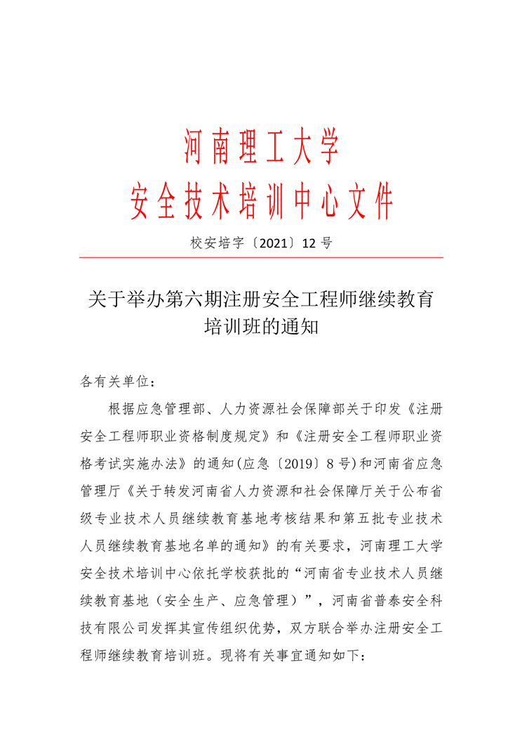 关于举办第六期注册安全工程师继续教育培训班的通知