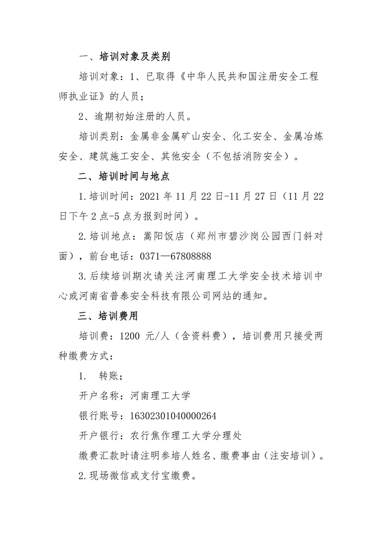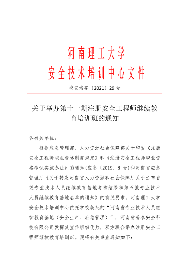 关于举办第十一期注册安全工程师继续教育培训班的通知