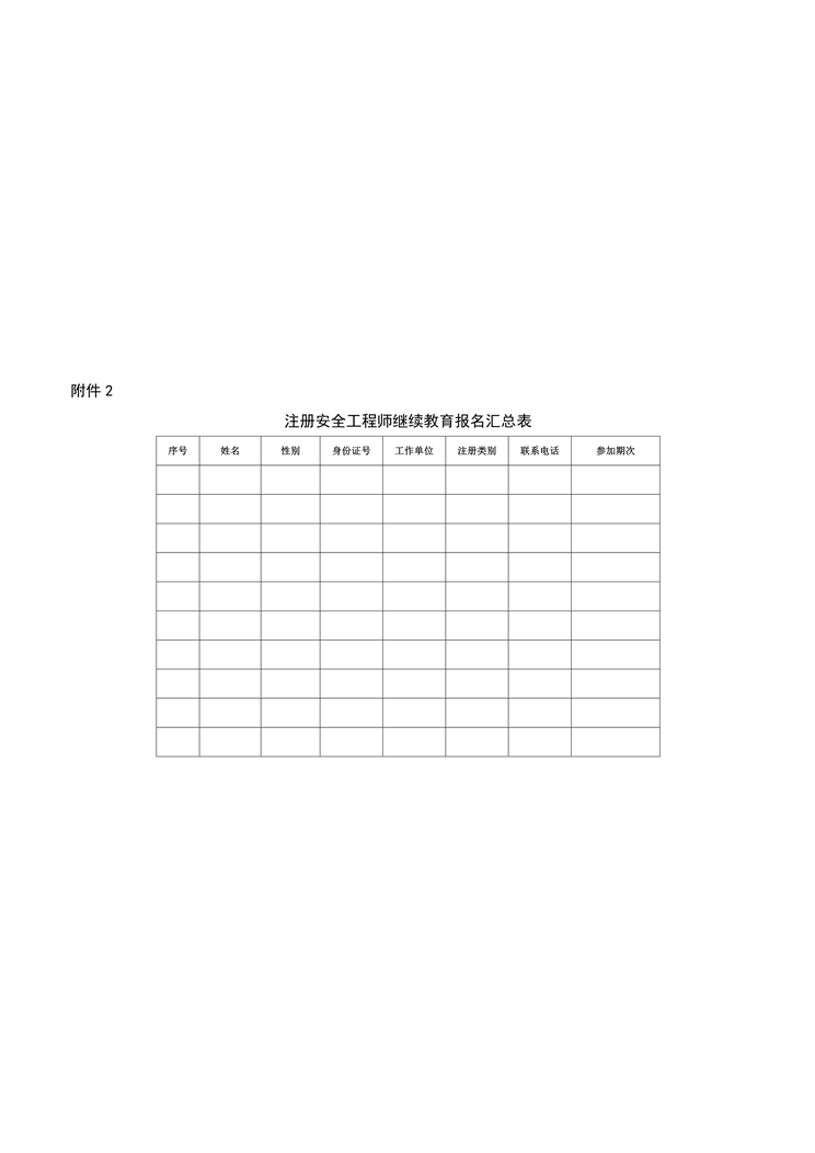 附件2:注册安全工程师继续教育报名汇总表